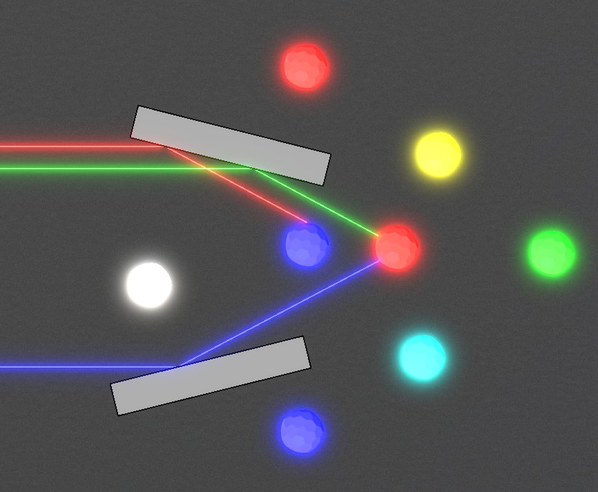 It needs some usability help, though. Like, it’s hard to tell that the colour of the sensor is the colour that it wants. Seems like it should light up like that when it gets hit by the desired colour. Maybe the glow should be the desired colour and the middle gets filled with the colours that are hitting hit. We’ll see. I’m happy with this for now, I can use them to create new levels as-is.