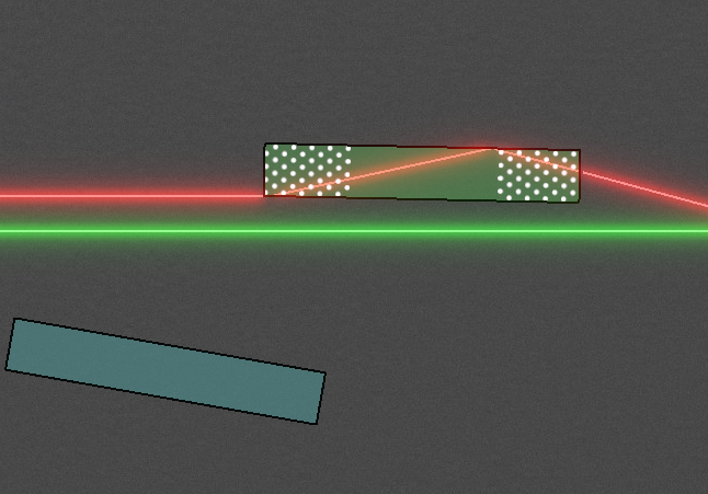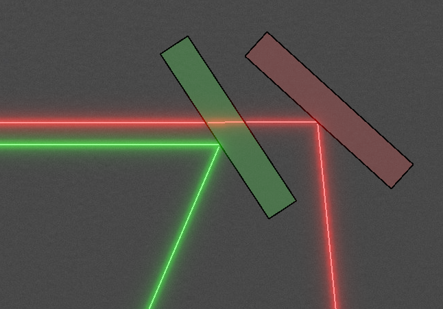 In the image above the red line gets refracted slightly (I used constants for air) and it looks fine now but with internal reflection it gives the player a lot of flexibility.